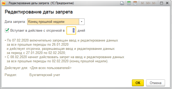 Дата запрета изменения данных в 1С