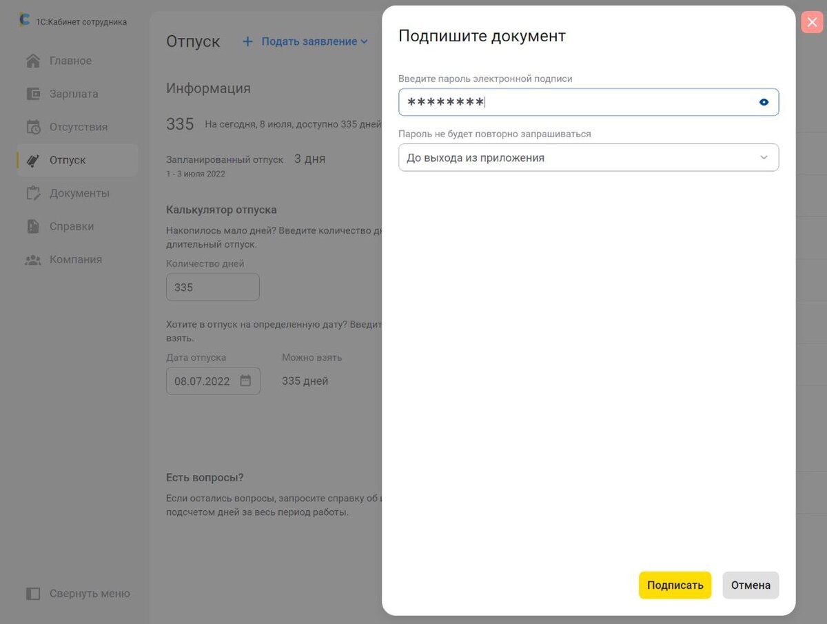 1С:Кабинет сотрудника - мобильное взаимодействие сотрудников и бухгалтерии по кадровым вопросам