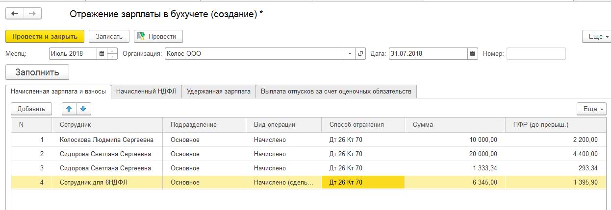 Отражение в бухучете в 1С: ЗУП 3.1