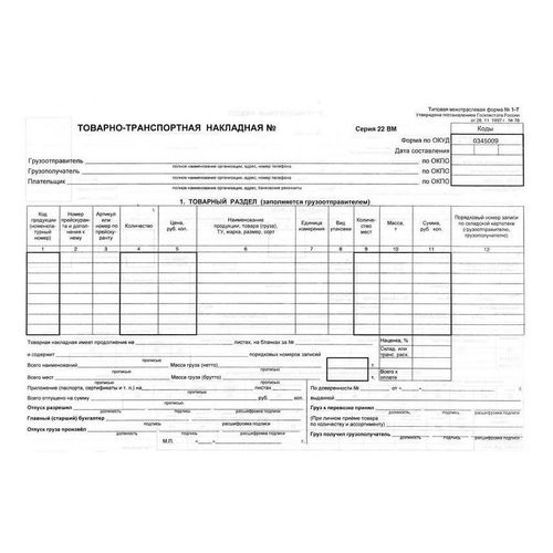 Советы по заполнению формы 1С Транспортная накладная и правильной обработке информации
