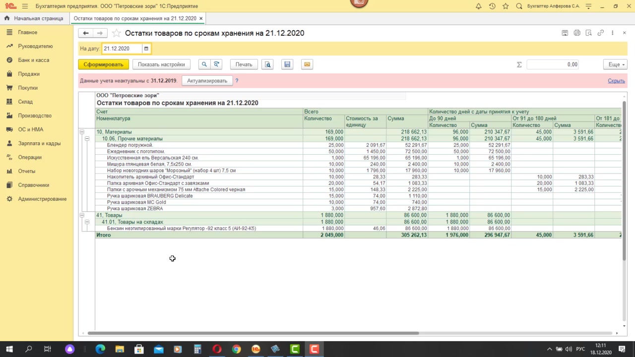 Остатки товаров по срокам хранения в программе 1С: Бухгалтерия 8