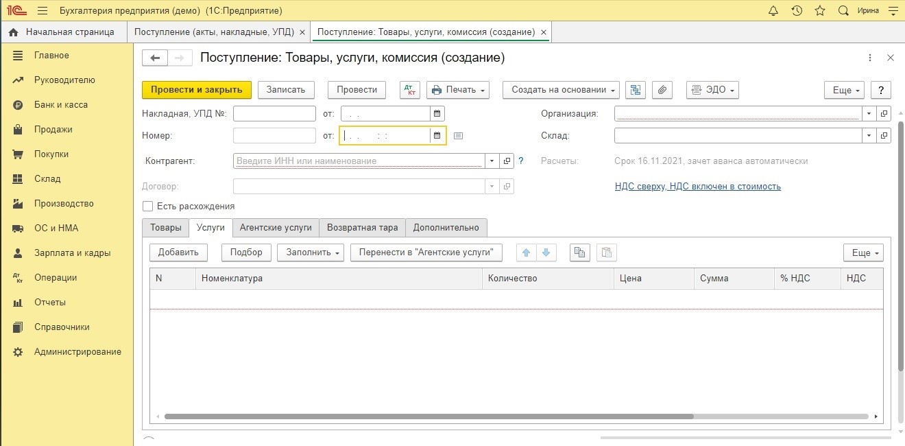 Поступление товаров и услуг в 1С 8.3 Бухгалтерия - пошаговая инструкция