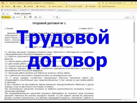 Создание Трудового договора 1 часть.