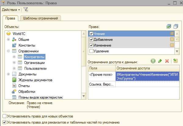Ограничение доступа к контрагентам на уровне записей в 1с ут 10.3 (RLS)