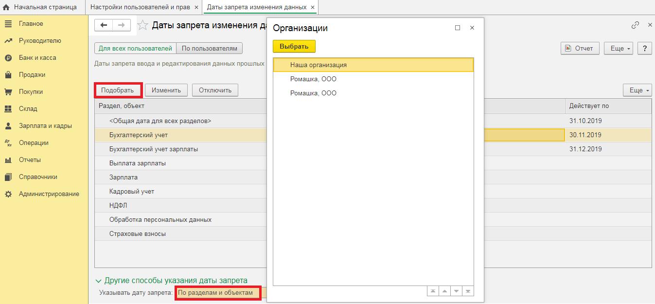 Как установить даты запрета изменения данных в 1С:Бухгалтерии 8