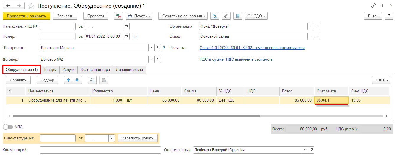 Безвозмездная передача товара в 1С Бухгалтерия 8