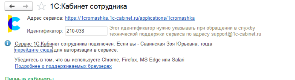 Демонстрация работы с сервисом 1С:Кабинет сотрудника