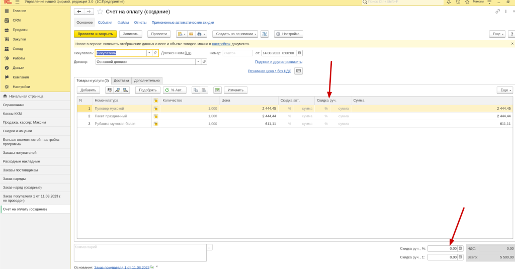 Настройка скидок в 1С Розница