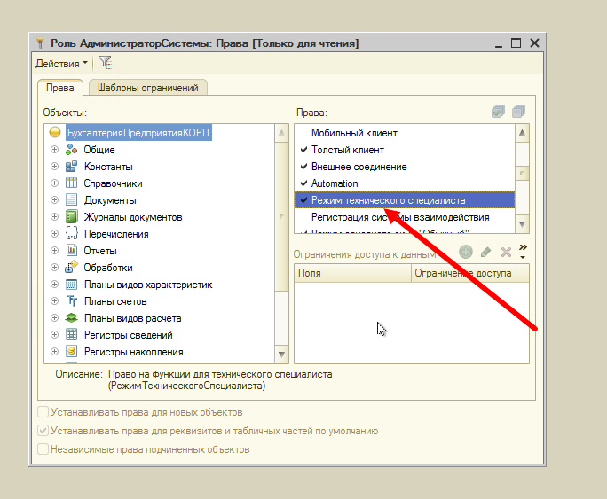 Настройка прав в 1С - права, роли, группы доступа