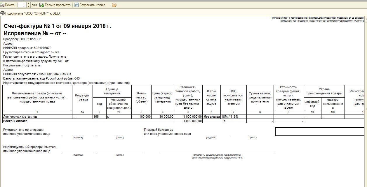 Счет-фактура налогового агента в 1С:Бухгалтерии 8