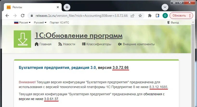 Как посмотреть и обновить текущий релиз платформы и конфигурации в 1С - Микос Программы 1С