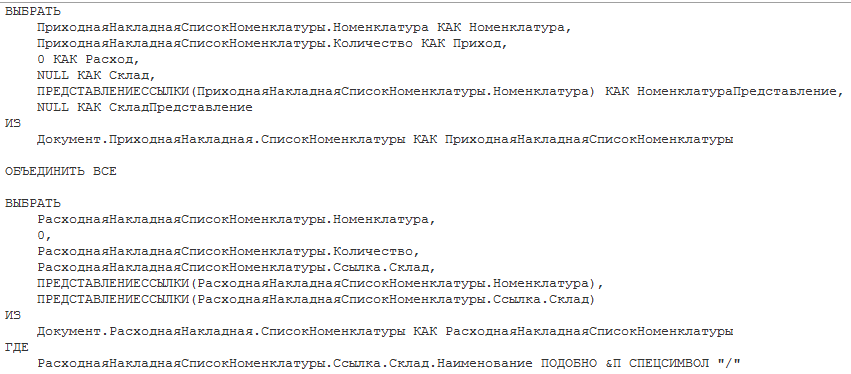 Объединить в запросе 1С