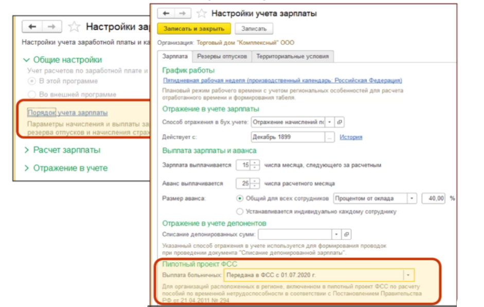 Пилотный проект ФСС и прямые выплаты пособий - как настроить в 1С