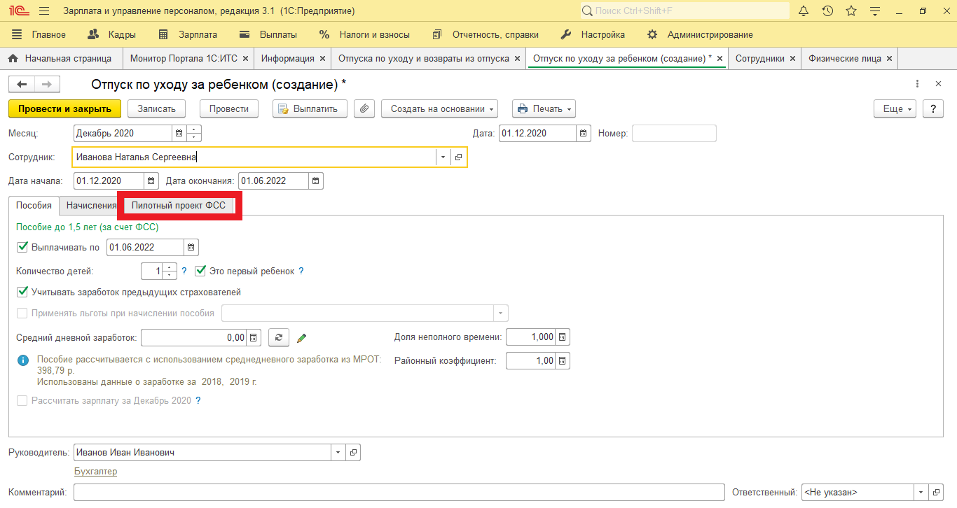 Пилотный проект ФСС в 1С 8.3 ЗУП