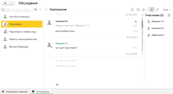 Система взаимодействия в 1С (обсуждения) - Обзор возможностей - WebChat