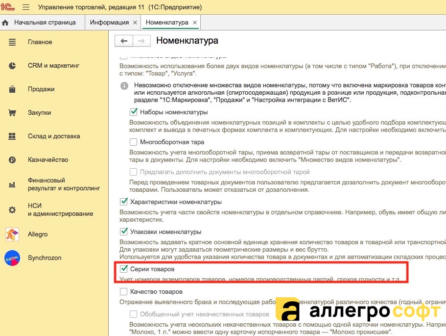 Урок 55. Серийный учет номенклатуры (справочно) в УТ 11