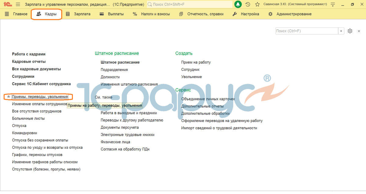 ЗУП 3.1. Прием на работу нового сотрудника