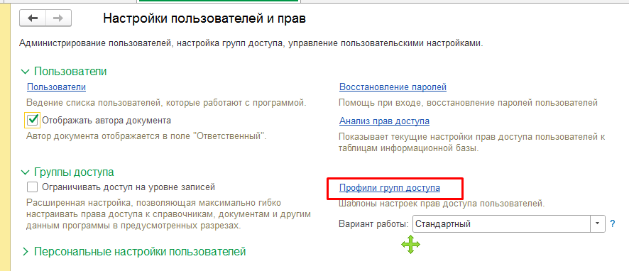 Используйте функцию Группы пользователей в 1С для назначения прав доступа определенным группам пользователей.