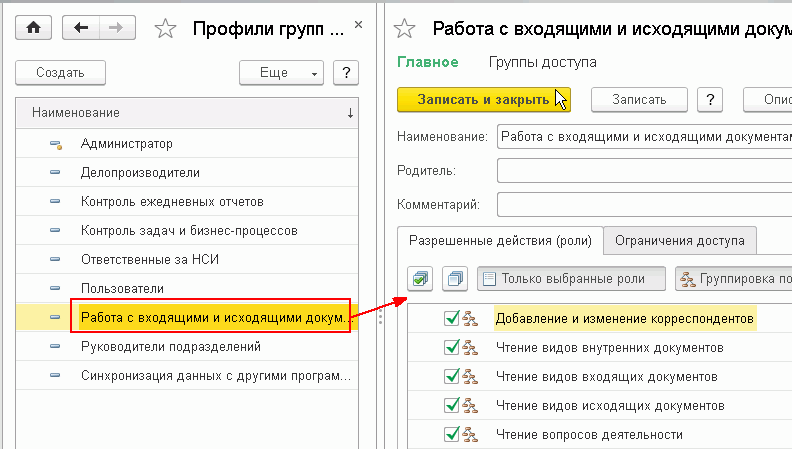 Настройка прав доступа в 1С Бухгалтерия 8 3 и настройка разрешенных действий для пользователей.