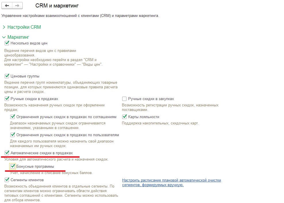 Настройка скидок в 1С Розница