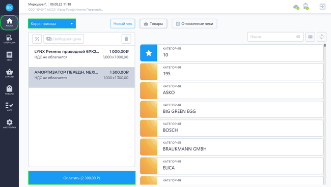 Инструкция по созданию чека коррекции на основании в «1С:Касса»