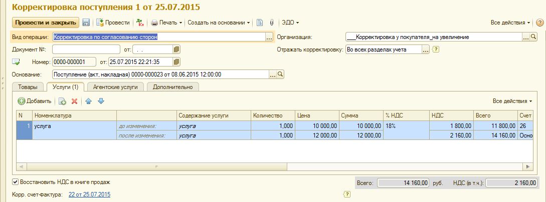 Как отражается корректировка реализации в 1С 8.3 в сторону уменьшения.