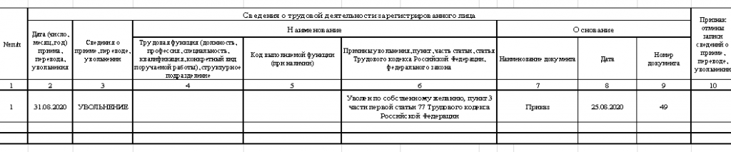 Не забудьте указать причину увольнения в поле комментарии трудовой функции.