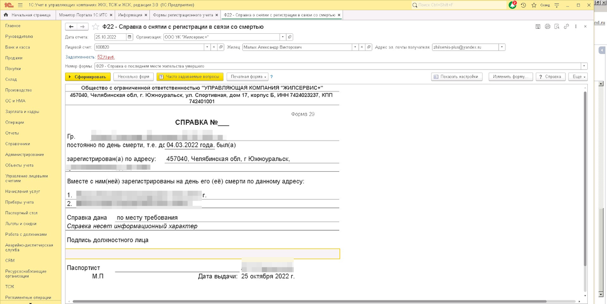 Пример работы в программе 1С ЖКХ для 1С