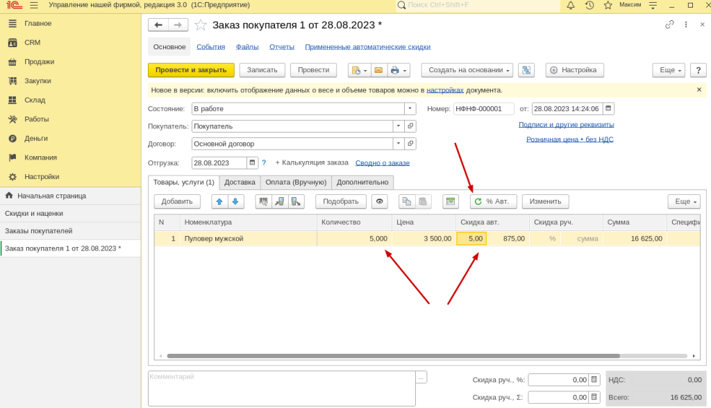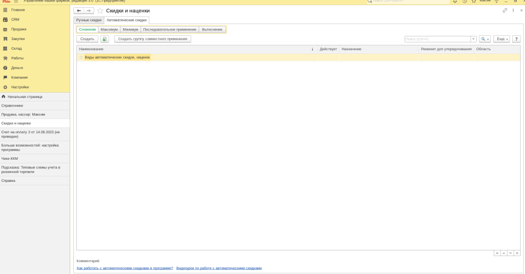 Автоматические скидки в конфигурации 1С: УНФ и 1С: Розница версии 3.0 (Часть 1)