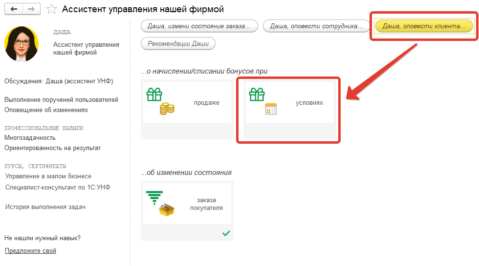 Ассистент Даша в 1С:УНФ