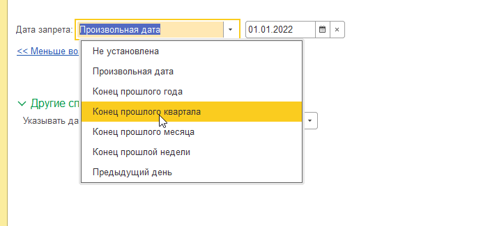 Запретить пользователям изменять документы - Дата запрета редактирования - Настройка 1С