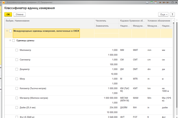 Единицы измерения в 1С:УНФ