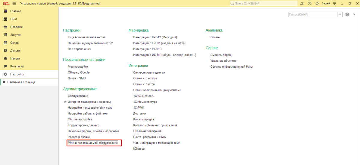 1С:Розница. Настройка оборудования. Новый 1С:РМК
