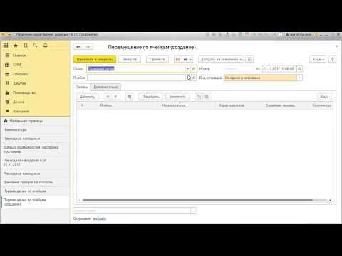 1С:Управление нашей фирмой 1.6. Урок 10. Перемещение товаров между складами. За 5 минут.
