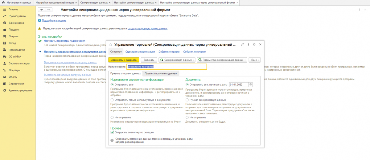 Синхронизация 1С:Бухгалтерия с 1С:УТ и 1С:ЗУП, настройка и выгружаемые данные - 28.07.2022