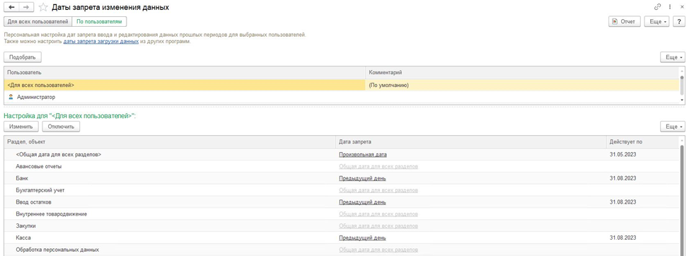 Даты запрета изменения данных
