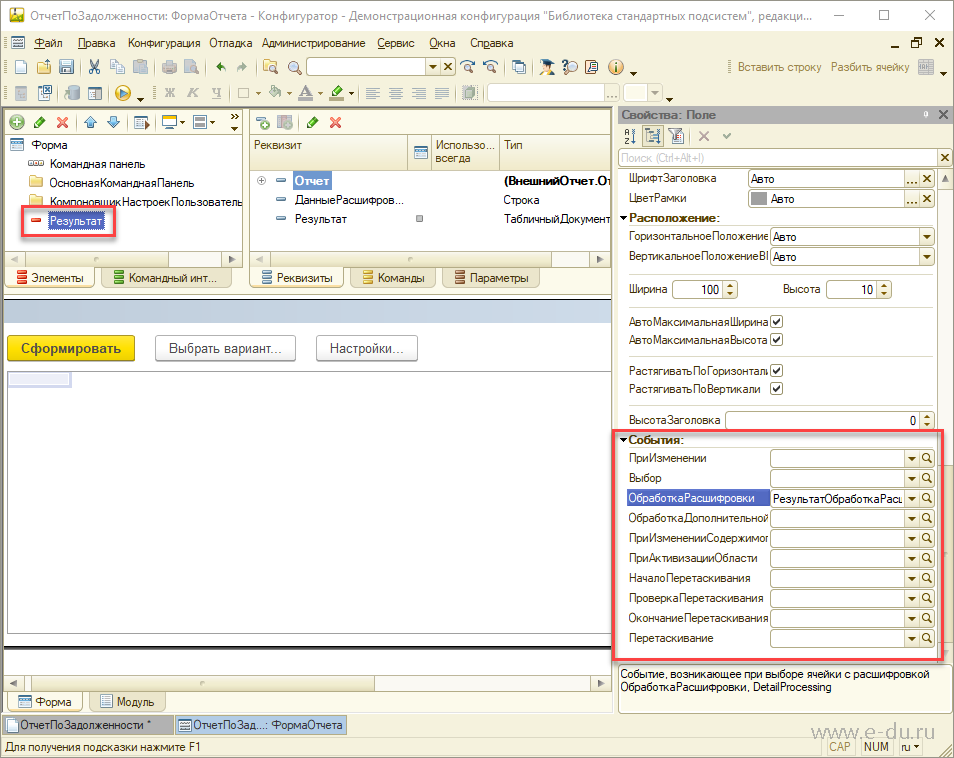 Занятие №25 - Вызываем отчет из документа