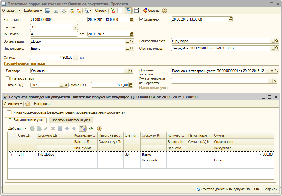 Комплект документов на оплату в 1С. Проведение, корректировка. Часть 2