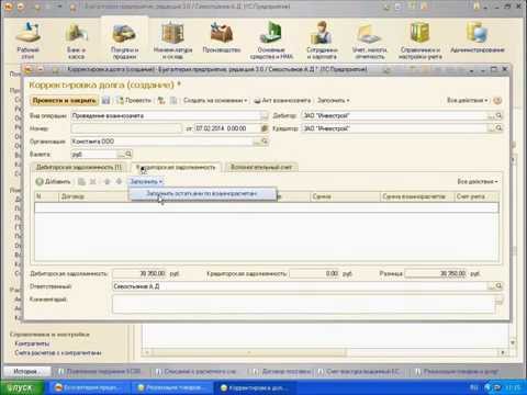 Корректировка долга в 1С 8.3: проведение взаимозачета