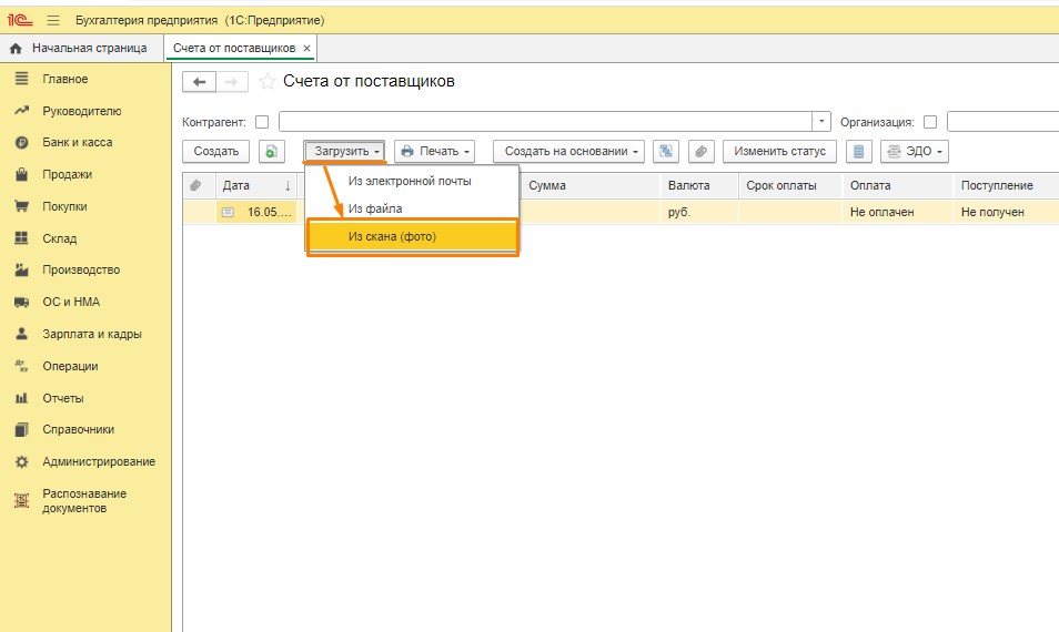 Загрузка документов в 1С по скану с помощью сервиса распознавания документов.