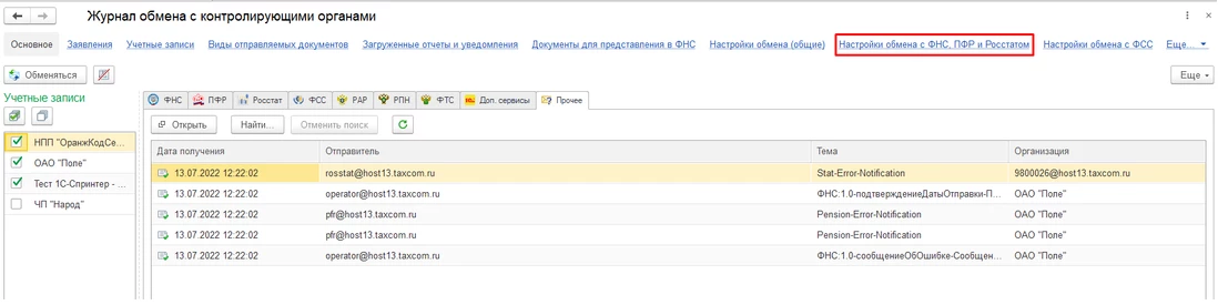 Уделите особое внимание правильному формированию и контролю всех необходимых отчетов в журнале обмена с контролирующими органами.