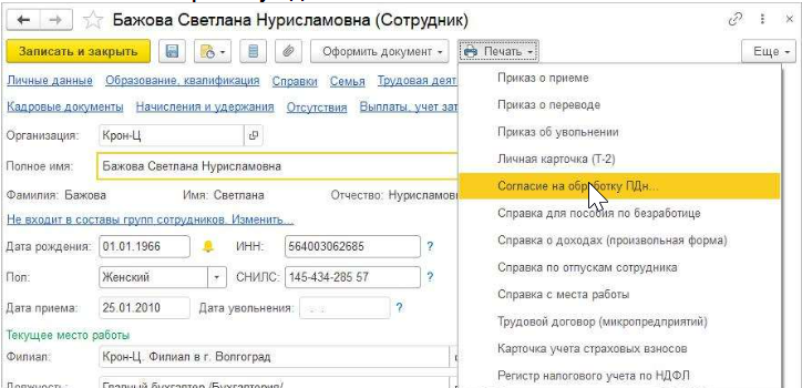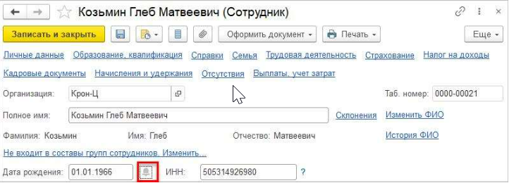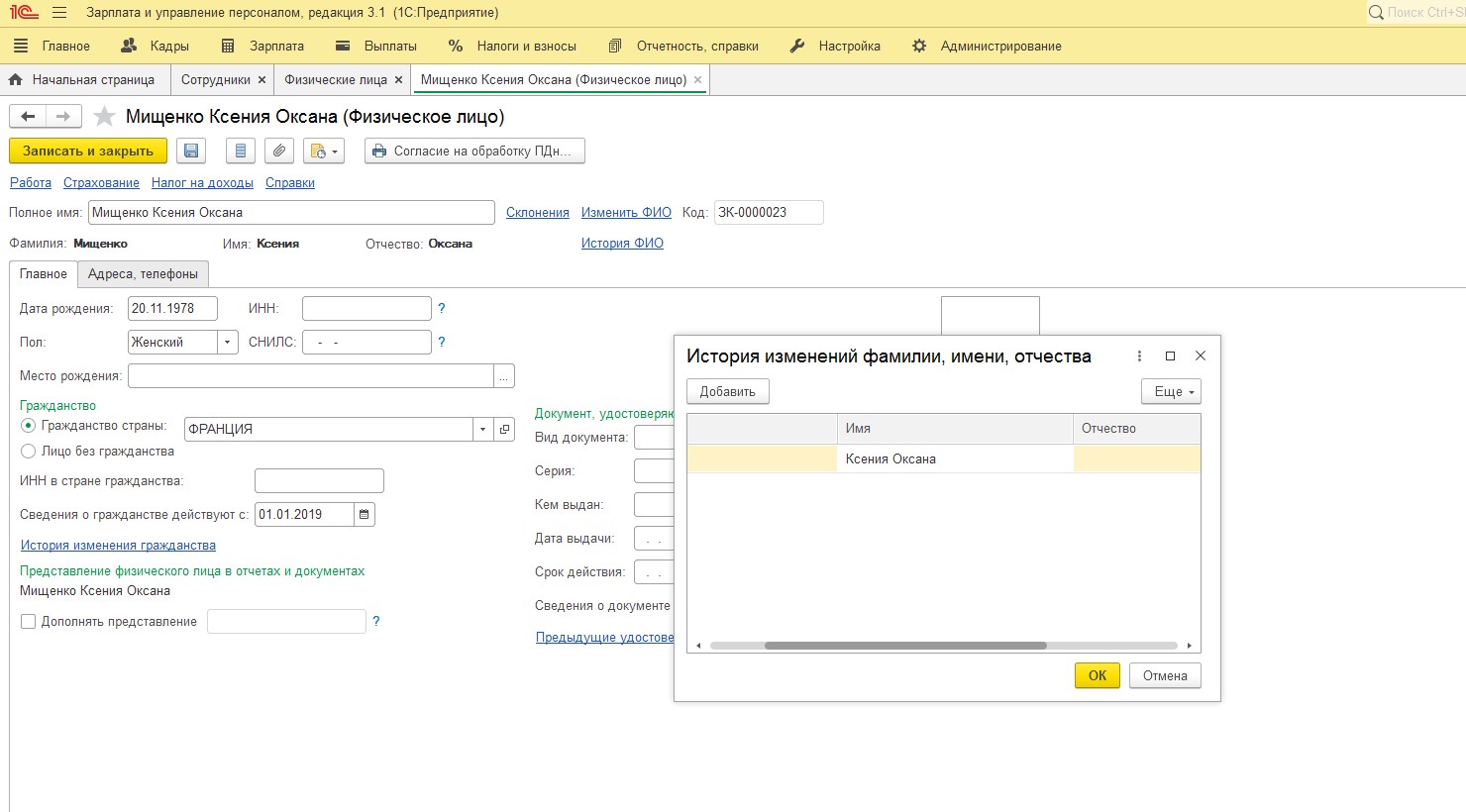 Создание физических лиц и сотрудников в 1С: ЗУП 3.1