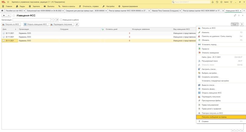 Работа в 1С:ЗУП. Как ответить на извещение от ФСС