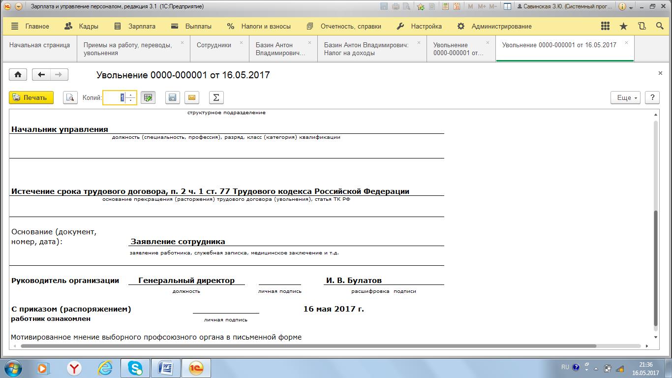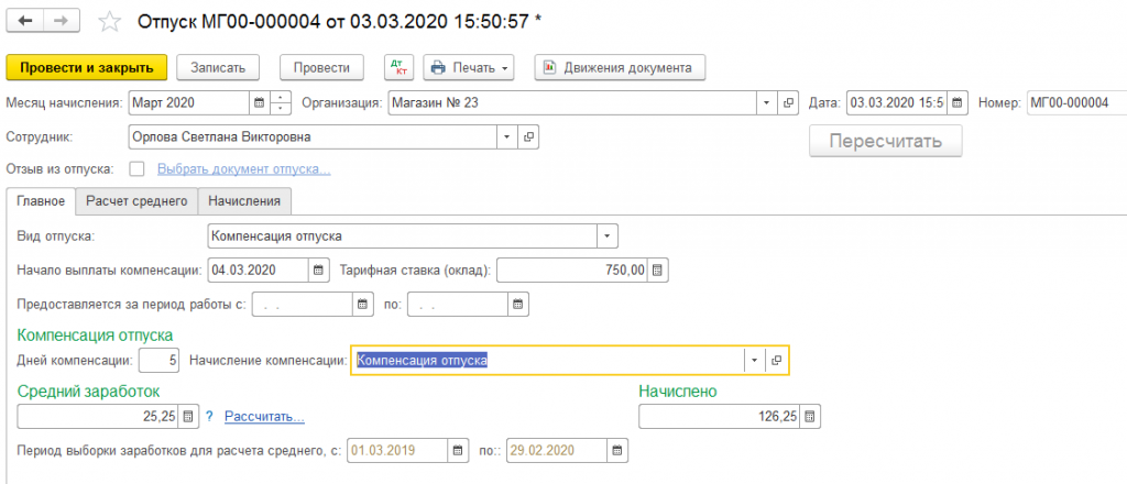 Компенсация отпуска при увольнении в 1С:ЗУП 8.
