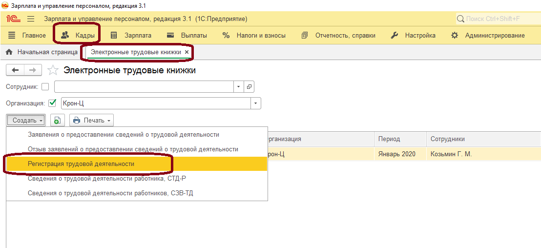 Корректировка и отмена сведений о трудовой деятельности СЗВ-ТД в 1С:ЗУП