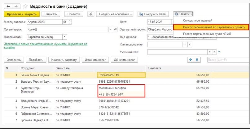 Настройка зарплатного проекта в «1С: ЗУП» без использования обмена с банком