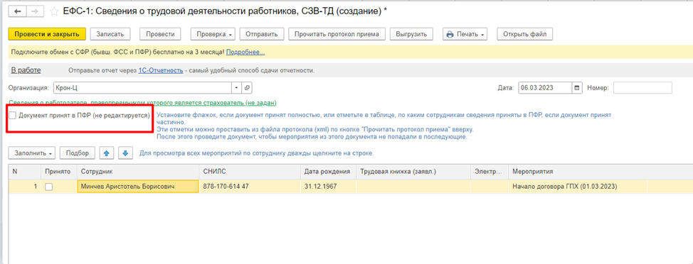 Подготовка сведений о трудовой деятельности по форме СТД-Р для сотрудника в 1С:ЗУП ред. 3