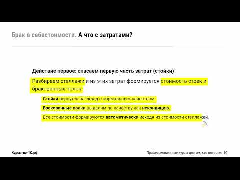 1С ERP, 11 Учет отходов и брака, Учебный курс по производству