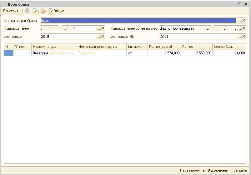 Задача по упр учету в 1С:ERP 2.5: корректируем расходы по браку и отражаем в себестоимости продукции