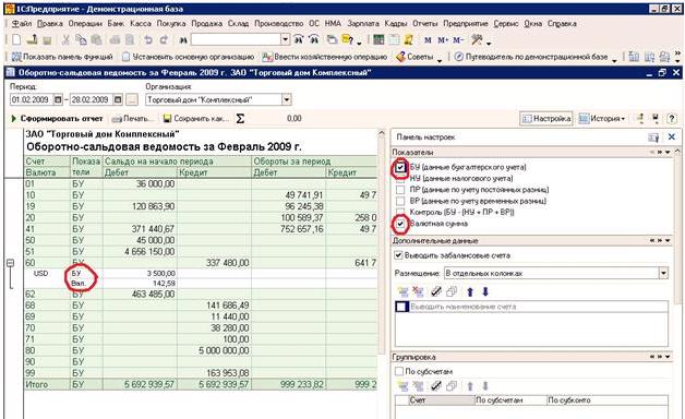 Оборотно-сальдовая ведомость в 1С Бухгалтерия 8